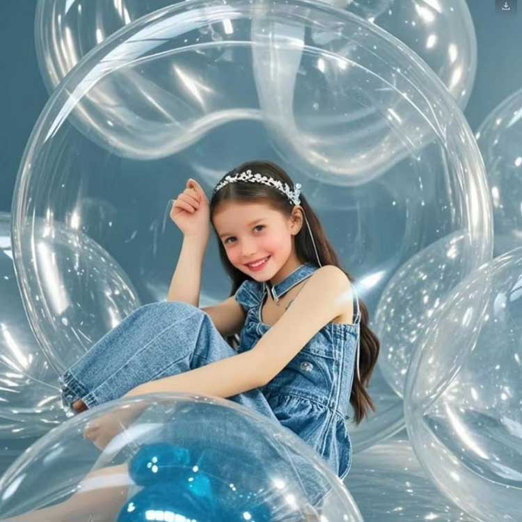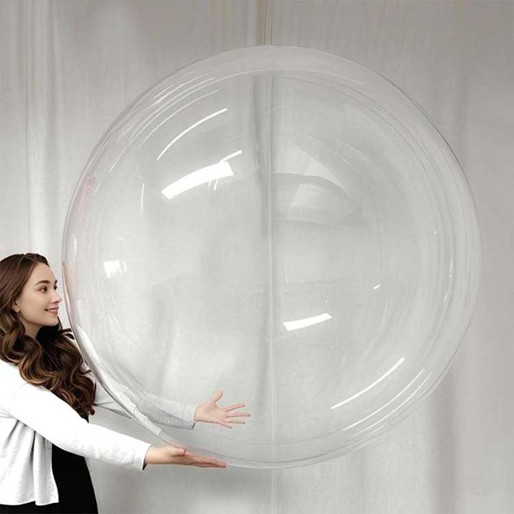 48palcové kulaté čiré balónky Bobo se mohou přizpůsobit různým prostředím. Když jsou spárovány s 10 LED světelnými řetězci a naplněny héliem, mohou vytvořit světelný efekt. Tyto balóny lze použít pro komerční výstavy k dosažení precizního marketingu; lze jimi také vyplnit dětské party barevnými okvětními lístky pěny nebo peří. při nedávné svatbě bylo použito 100 na zakázku vyrobených 48palcových kulatých průhledných bublinkových balónků, které získaly velkou pochvalu.