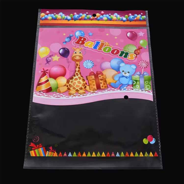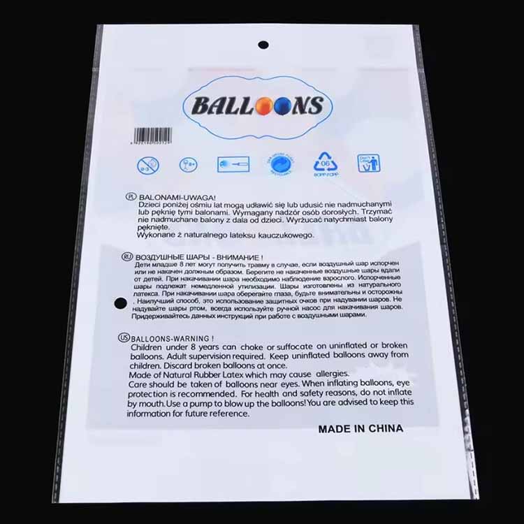 Balónové balicí sáčky jsou obvykle vyrobeny z materiálu CPP (litý polypropylen). Protože film CPP má dobrou flexibilitu a odolnost proti chladu, je velmi vhodný pro výrobu balónkových tašek. Současně je také velmi vysoká transparentnost a lesknutí materiálu CPP, což může lépe ukázat barvu a vzorec balónků. Kromě toho mají materiály CPP dobrou plasticitu a snadno se tisknou, složenou a proces, které mohou splňovat různé požadavky na balónkové sáčky.
