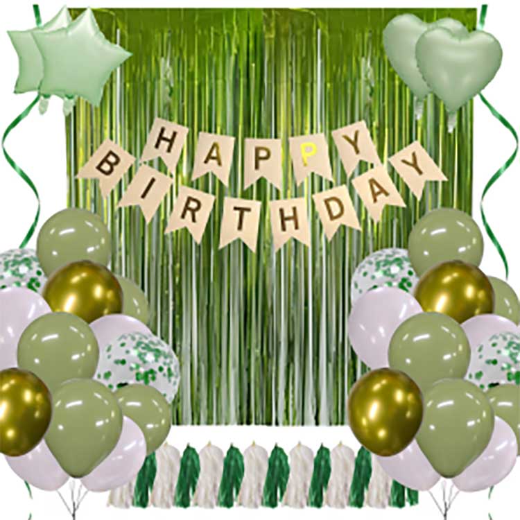 Narozeninové dekorační sady se používají k ozdobení pozadí při oslavě narozenin a zahrnují gumové balónky, fóliové balónky, střapce, stuhy, fóliové závěsy atd. K dispozici jsou různé barvy, takže každý, od dětí a dospívajících až po dospělé, může najít styl, který se mu líbí. Přizpůsobení je také k dispozici, pokud máte preferovanou barvu.