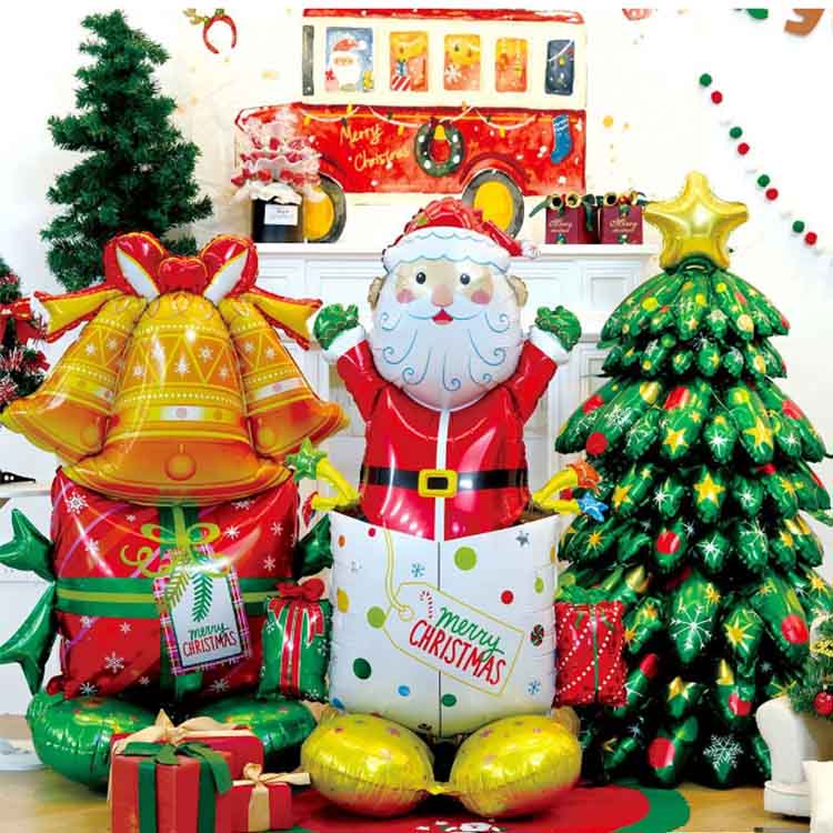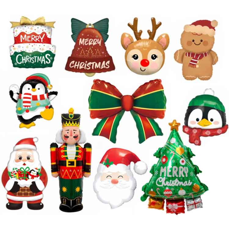 Vánoční hliníkové fóliové balónky obsahují ve svých návrzích vánoční prvky. Tyto balónky jsou k dispozici v klasických tvarech, jako je Santa Claus, vánoční stromky, sněhové vločky a zvonky, a jsou zdobeny slogany „Merry Christmas“. Barvy obsahují vánoční prvky, především barvy s vánoční tematikou, jako je červená, zelená, zlatá a stříbrná, vytvářející sváteční atmosféru. Jsou k dispozici v široké škále velikostí, od mini 30 cm po obří 100 cm, a uspokojí různé dekorativní scénáře a potřeby.