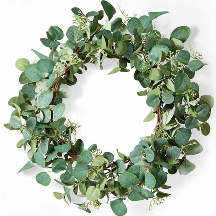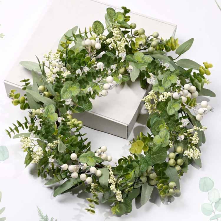 Dekorační girlanda obsahuje listy jako hlavní prvek, s různými styly vykládanými různými květinami jako ozdobami a celkový tvar je kruhový. Žíly listů jsou jasně viditelné a vytvářejí realistický efekt. Odolá ultrafialovému záření a nevybledne. Je to nejlepší volba pro zdobení přední části domu nebo krbové římsy během Vánoc.