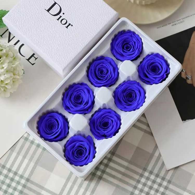 Růže jsou klasifikovány do tří úrovní: A, B a C. Růže třídy A jsou větší a plnější. Naše dárková krabička věčných květin s 8 květy růže je vyrobena z růží třídy A. Rozměry dárkové krabičky jsou 24cm*13cm*8cm. Každá krabička váží přibližně 150 g. Trvanlivost konzervovaných květin: 3-5 let za normálních skladovacích podmínek, což je výhodnější pro váš prodej.
