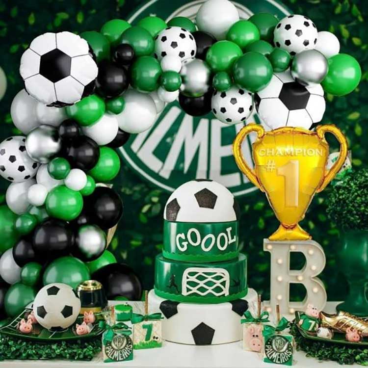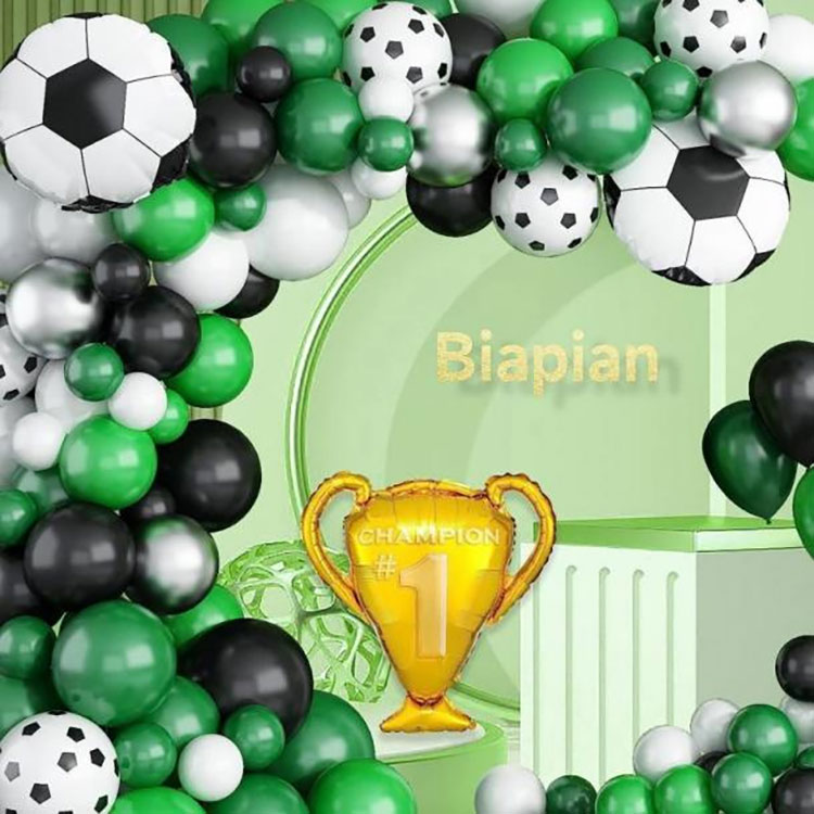 Sada balónových oblouků s motivem fotbalu obsahuje zelené, černé a bílé balónky jako hlavní součásti, s balónky ve tvaru fotbalu, které jsou přidány jako ozdoby, aby vytvořily výrazně tematické dekorativní pozadí. Tento produkt je speciálně navržen pro fotbalové akce, večírky s fotbalovou tématikou, aktivity fotbalových klubů atd., vytváří živou atmosféru a inspiruje více lidí k lásce k fotbalovým aktivitám.