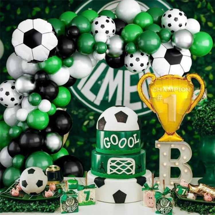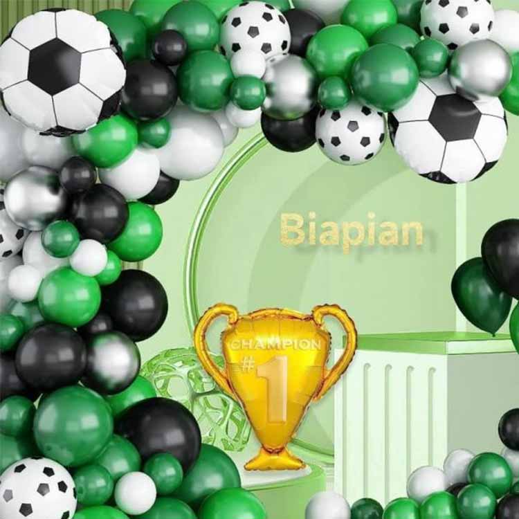 Balónové obloukové sady s motivem fotbalu obsahují zelené, černé a bílé balónky jako hlavní komponenty, s balónky ve tvaru fotbalu přidané jako ozdoby, aby vytvořily výrazně tematické dekorativní pozadí. Tento produkt je speciálně navržen pro fotbalové akce, večírky s fotbalovou tématikou, aktivity fotbalových klubů atd., vytváří živou atmosféru a inspiruje více lidí k lásce k fotbalovým aktivitám.
