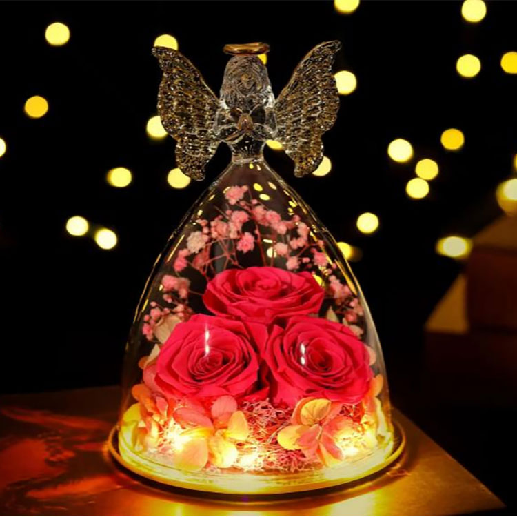 Náš skleněný anděl konzervovaný květinový dárek podporuje OEM & ODM.