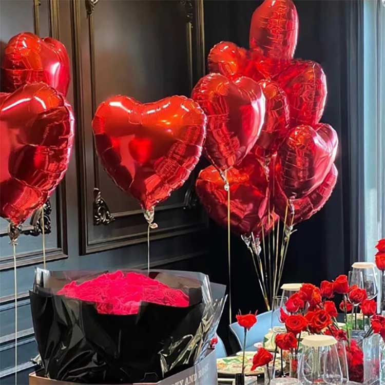 Balónky z hliníkové fólie ve tvaru srdce jsou vyrobeny ze zesíleného nylonového materiálu, tyto balónky se mohou pochlubit živými vzory potištěnými ekologickými inkousty. V balení je 50 balónků.