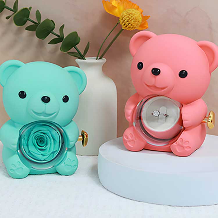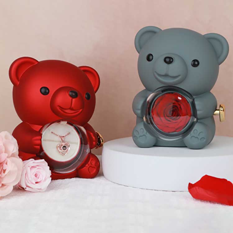 Tato šperkovnice Hug Bear Rose se používá k vystavení na stole, poličce nebo nočním stolku. Nejpoutavějším prvkem je zachovalá růže uprostřed. Otevřením růže se objeví přihrádka na uložení šperků, prstenů nebo suvenýrů.