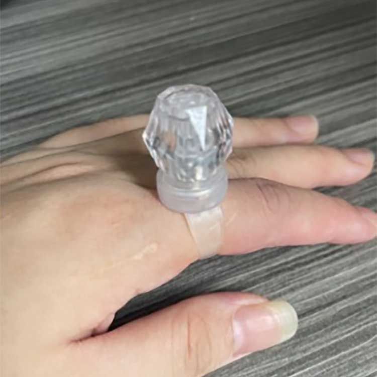 LED svítící prsten na prst je vyroben z měkkého pryžového materiálu a na ruce jej mohou nosit děti i dospělí. Tyto produkty jsou šetrné k pokožce a nezpůsobí žádné poškození prstů. Jsou vhodné pro hraní ve tmě. Stačí na ně jemně stisknout a LED prstýnek se ve tmě rozsvítí. Světla přitahovala pozornost všech a přinesla všem radostný zážitek.