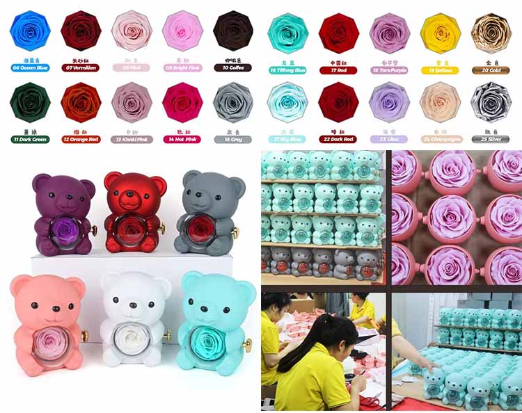 Během výrobního procesu je zavedena přísná kontrola kvality a každý medvídek s překvapením z konzervovaných květin prochází několika kontrolami kvality. Po výrobě provádějí specializovaní inspektoři kvality důkladnou kontrolu celkového vzhledu medvěda, integrity designu a detailní povrchové úpravy.