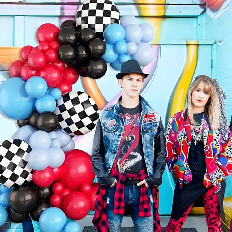 Dekorační sada balónového oblouku se závodní tématikou se skládá z 88 komponentů. Obsahuje 80 latexových balónků, 6 fóliových balónků, 1 balónkový řetízek a 1 lepicí tečku.